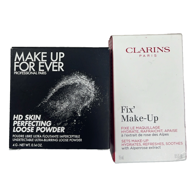 2件套- 4g Make Up 玫珂菲散粉 0.1號色 + 15ml Clarins定妝噴霧 (玫瑰花味) 新品