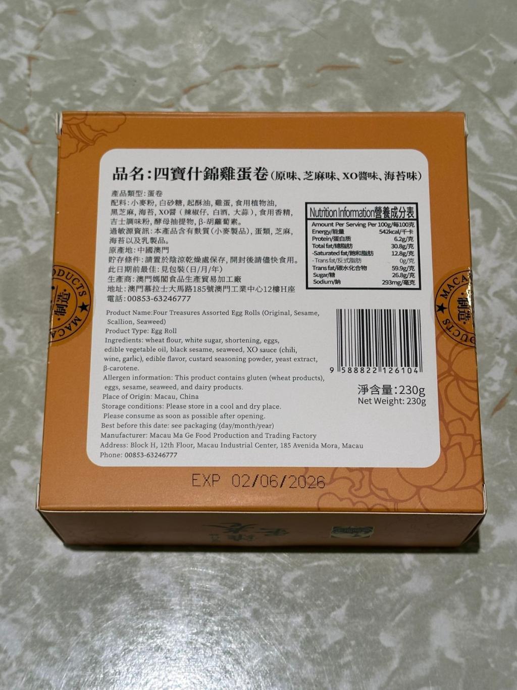 媽閣四寶雜錦雞蛋卷(230G)