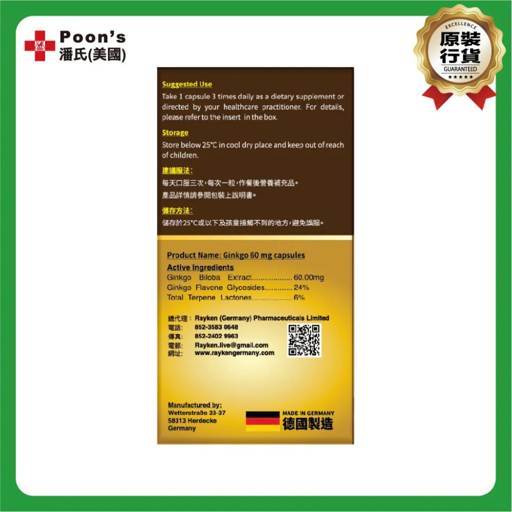 ( 全新配方 ) GINKGO 萊康斯 (德國)強力腦活素 150's