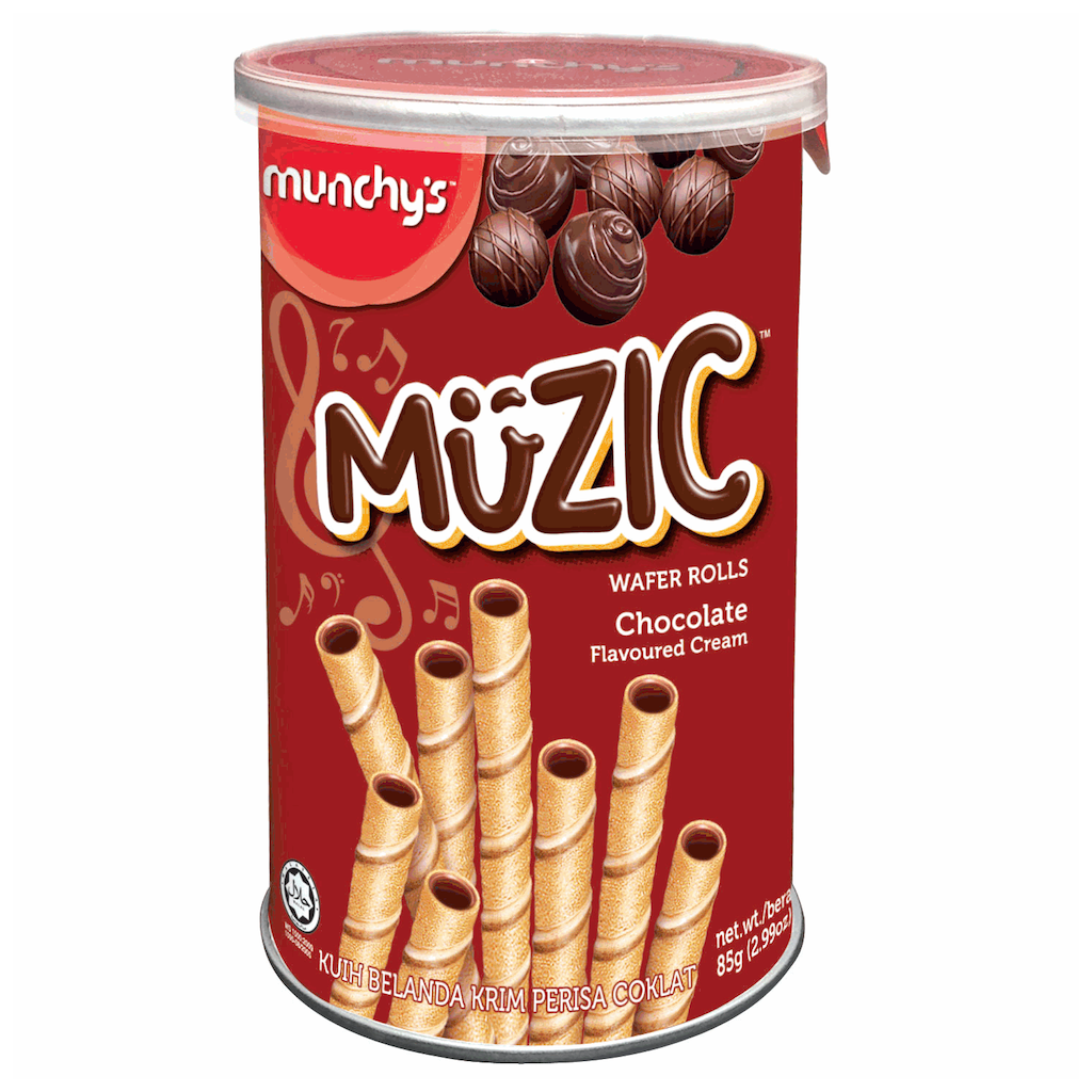 Muzic Wafer Rolls Chocolate Flavoured Cream 妙樂朱古力味威化卷 85g
