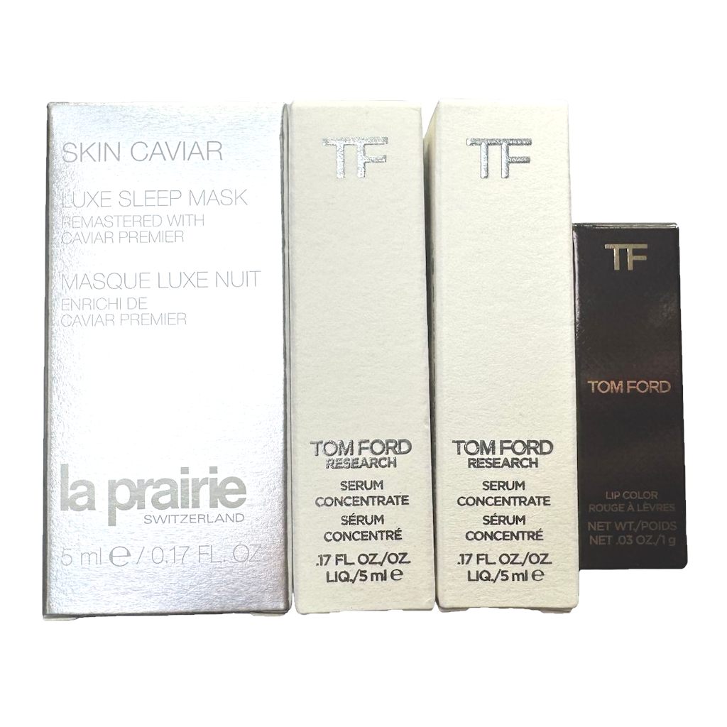 4件套 - 5ml TF 精華露 x2 + 1g TF 唇膏19號色 + 5ml La Prairie睡眠面膜牙膏管裝
