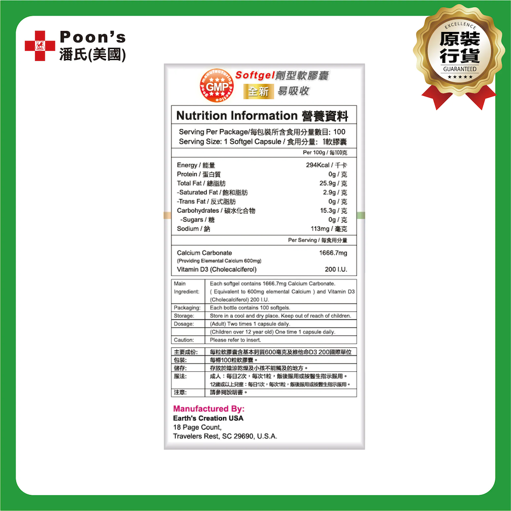 主頁 潘氏 (美國) D3 強力鈣骨易液體鈣 100's